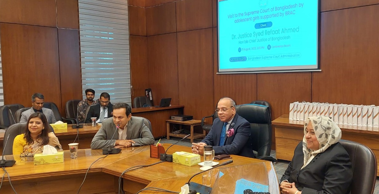 Thirty girls had the opportunity to meet Honourable Chief Justice Syed Refaat Ahmed during their visit to the Supreme Court of Bangladesh on Thursday, 21 August 2025. The girls, members of ‘Swapnosarothi’, an initiative under BRAC’s Social Empowerment and Legal Protection (SELP) programme, were given a guided tour of the Supreme Court premises. Aspiring to build careers in the legal profession, they were offered a unique opportunity to learn first-hand about the country’s judicial system.