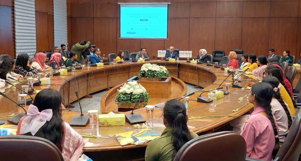 Addressing the girls, Chief Justice Syed Refaat Ahmed observed that women are now progressing equally with men in education, qualifying through competitive examinations, and entering the workforce. He noted that although 10 per cent of positions are reserved for women in recruitment, in his seven years with the Judicial Service Commission he had never seen that quota need to be applied. Women, he emphasised, had consistently earned their positions through merit and capability, often outperforming their male counterparts.