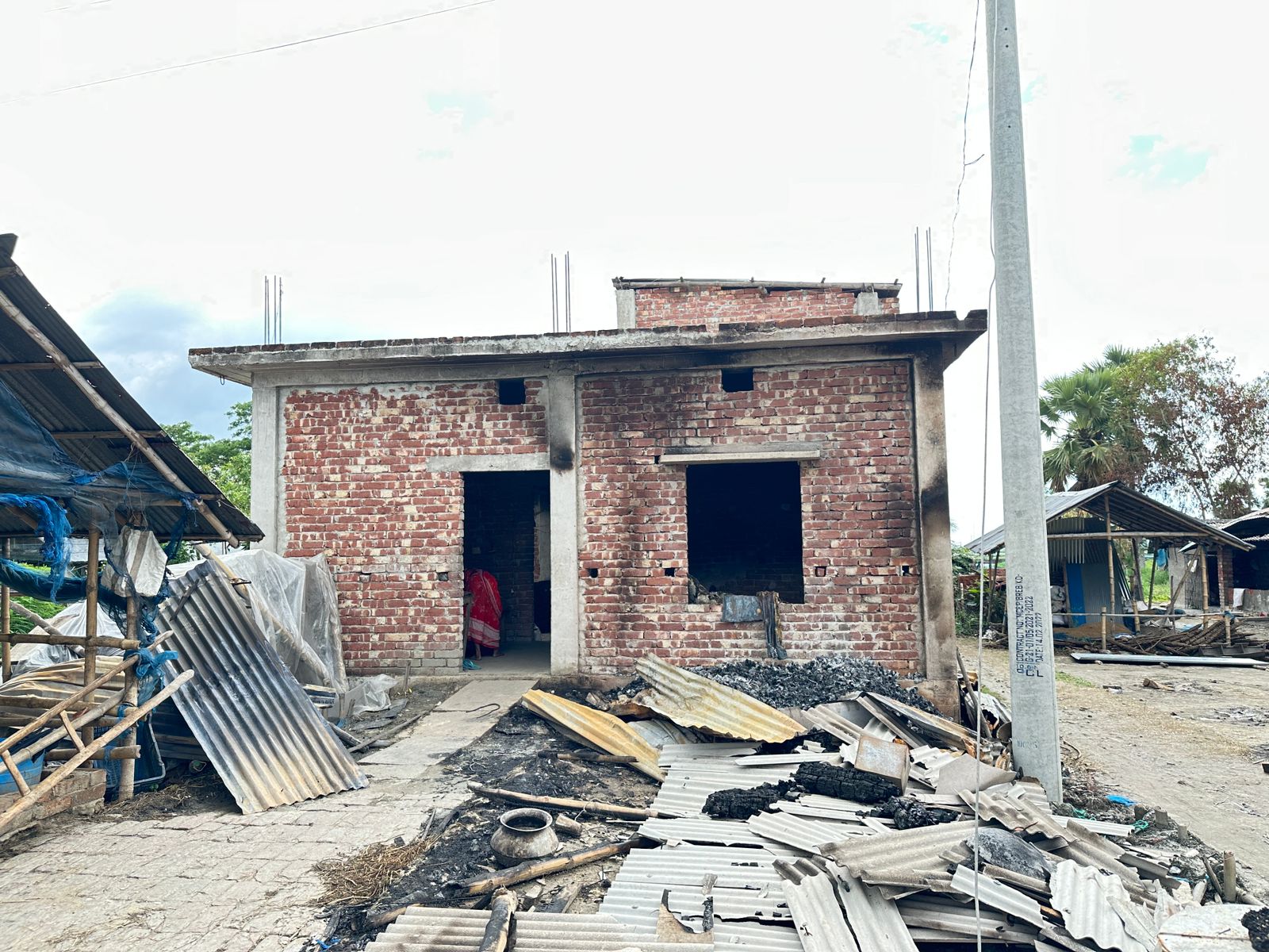 The Village Devastated by Flames Surrounded by water bodies on three sides and a paved road on the fourth, the